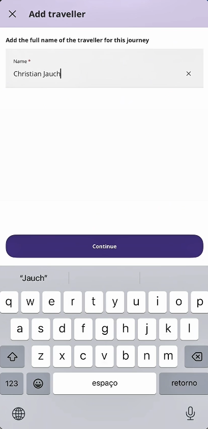 👉 Adicione seu nome completo exatamente como no passaporte.
