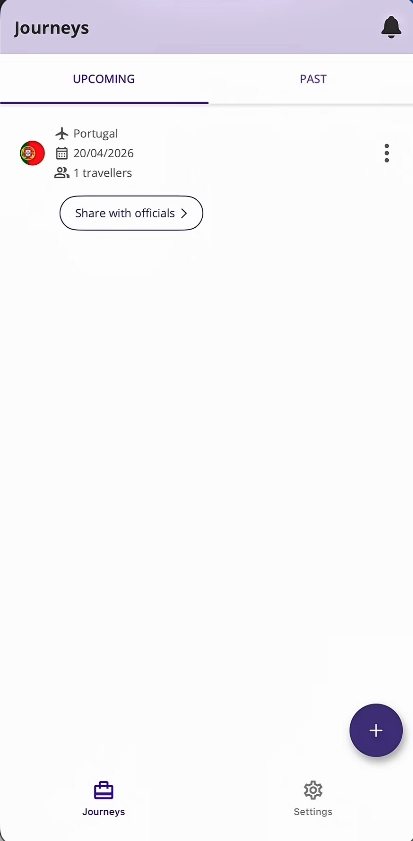 Journeys / Upcoming / Portugal / 20/04/2026 / 1 travellers / Share with officials