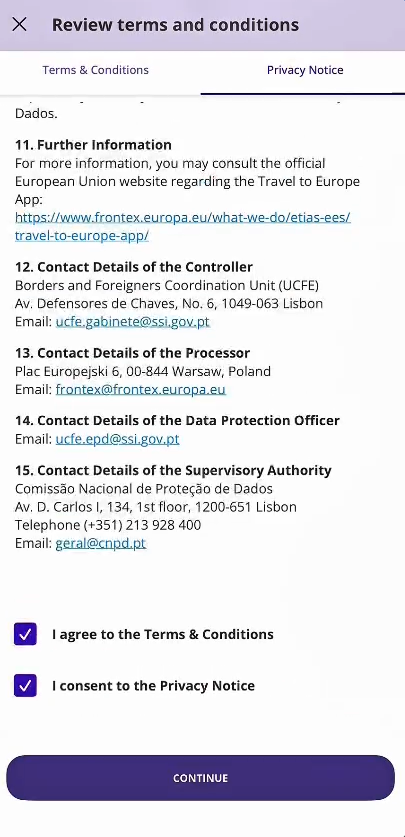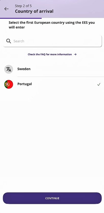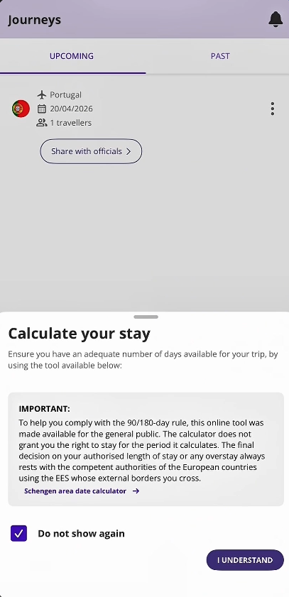 👉 O app é para registro prévio da sua entrada/saída no espaço Schengen.