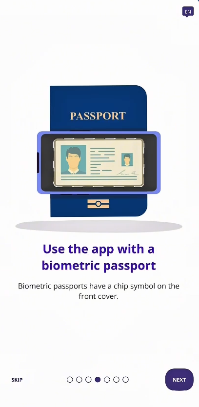 Texto: Use the app with a biometric passport