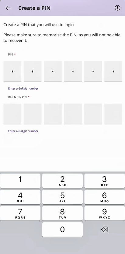 Texto: Create a PIN